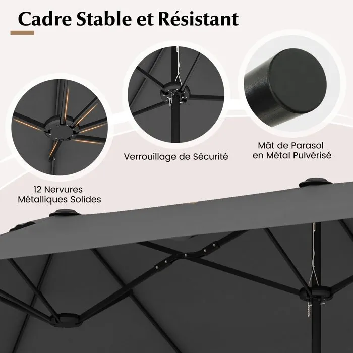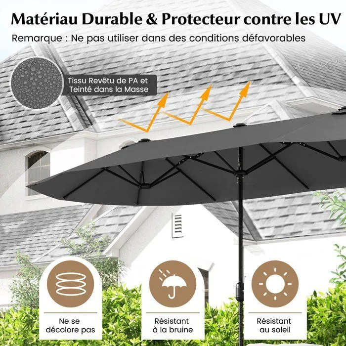 • Format XXL : Double parasol rectangulaire (396 x 201 cm).