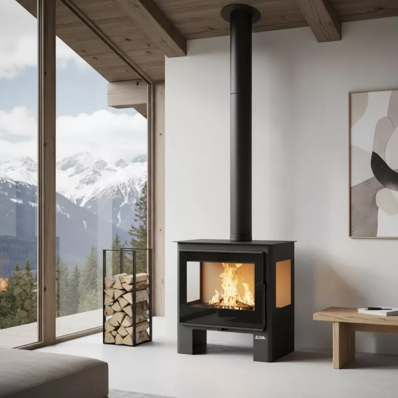 • Design : Vision panoramique sur le feu grâce aux 3 vitres.