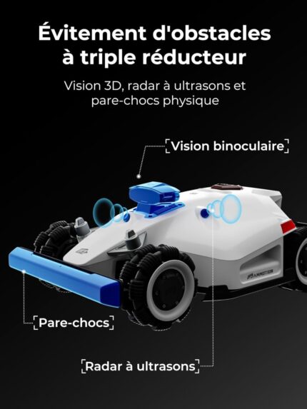 • Tout temps : Fonctionne sous la pluie et gère les pentes jusqu’à 35%.